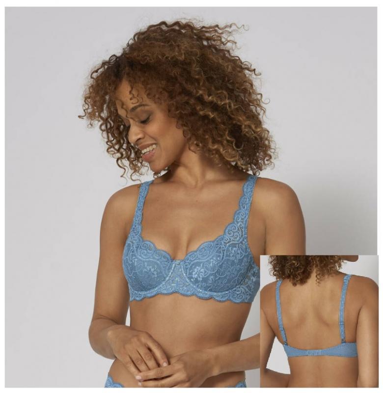 O culoare superba la un model binecunoscut: Amourette 300 WHP, cu armatura si cupe captusite cu un burete usor, bretele care pleaca direct din cupa si asigura astfel o sustinere deosebita, un confort sporit si un aspect foarte elegant.