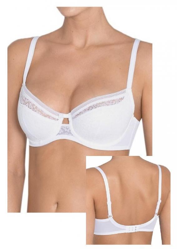 Sutien Triumph cu armatura si cupe din burete usor, care permite trecerea aerului astfel incat pielea sa respire normal. Are o aplicatie din broderie pe suprafata cupei, punte inalta care ajuta la o sustinere suplimentara si la crearea unui aspect foarte feminin si delicat.