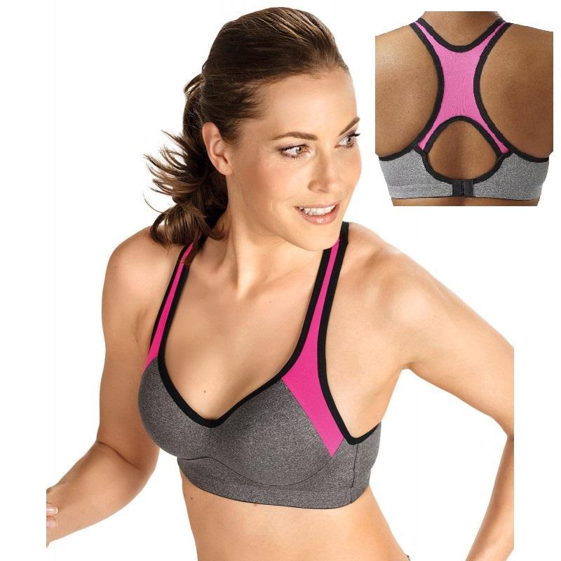 Bustiera sport Naturana, Cupe captusite si fara armatura pentru un nivel ridicat de efort cu o sustinere deosebita. Bretelele sunt putin buretate si inchiderea din spate in X pentru un confort sporit.