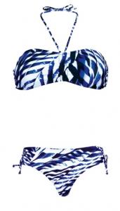 Costum de baie Naturana din 2 piese, avand sutienul cu prindere dupa gat si cupe captusite si detasabile (se pot scoate). Slipul are croiala clasica la spate si snururi in partile laterale pentru o reglare pe inaltime in functie de dorinta.