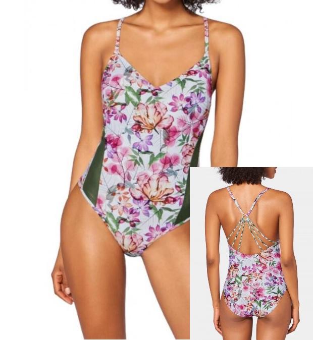 Costum de baie intreg, cupe fara armatura (sarma), captusite cu un burete usor pentru a asigura sustinerea si crearea unei forme frumoase. Bretelele sunt ajustabile si sunt prinse intr-un model feminin si jucaus la spate.