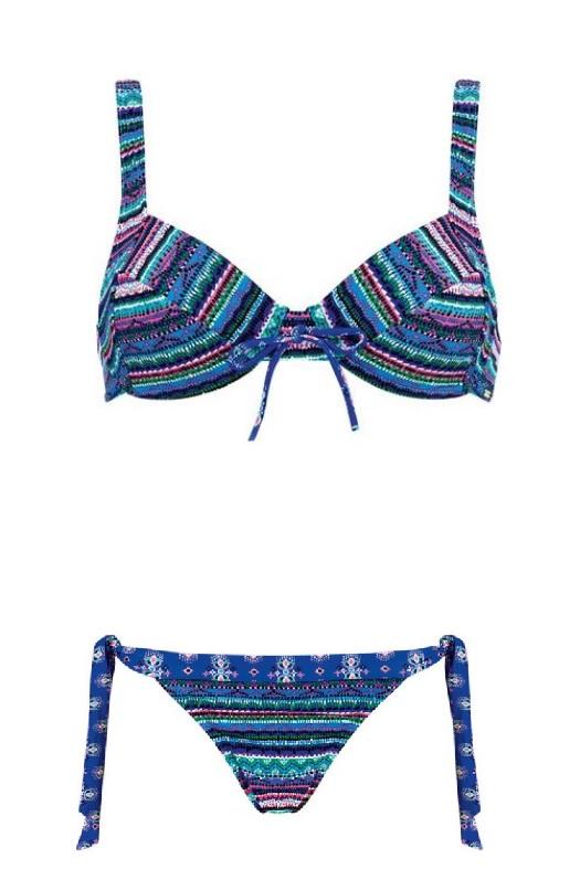 Costum de baie din 2 piese: sutien cu armatura si cupe simple din materialul costumului de baie, slip croiala clasica la spate ajustabil in ambele laterale.