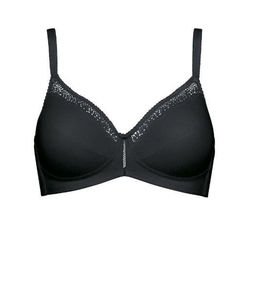 Sutien Triumph fara armatura, dintr-un material moale si avand un continuta mare de bumbac (80%). Dantela cu care este impodobita cupa in partea superioara, ii confera o eleganta si o fenimitate deosebita. Se poate comanda in culorile alb si bej deschis.