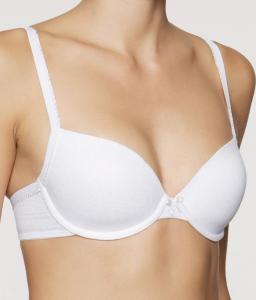 Sutien BeeDees by Triumph cu armatura si cupe usor captusite cu spuma. Eleganta este data de modelul in romburi de pe cupe si accesoriul fundita de pe puntea dintre acestea. Modalitatea multipla de a prinde bretelutele in spate, cat si micul accesoriu din fata il fac sa fie un sutien foarte apreciat. Sutienul este insotit de extensie de culoare alba.