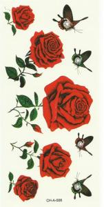 Tatuaj temporar cu trandafiri rosii si fluturi. Ai acum posibilitatea de a-ti folosi imaginatia pentru ale combina.