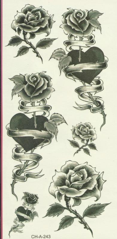 Tatuaj Temporar - Trandafiri si inimioare in alb si negru