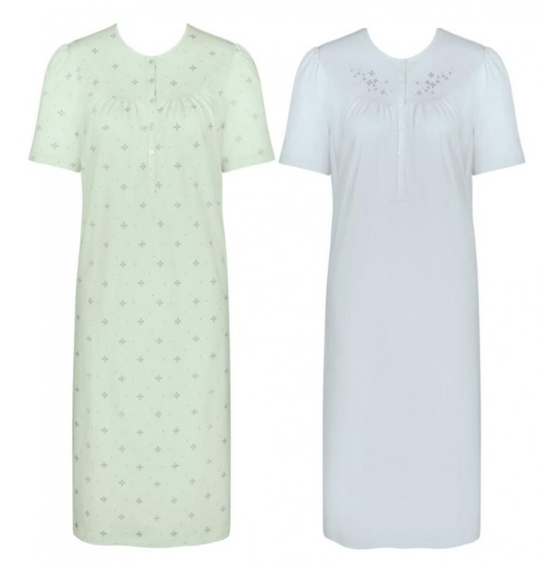 Set de 2 camasi de noapte, cu maneca scurta, 100% bumbac, un material nu foarte gros dar nici subtire, foarte placut la atingere si perfect pentru o seara relaxanta si o noapte de somn linistit.