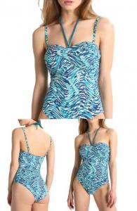 Costum de biae intreg, material cu proprietatea de uscare rapida. Sutienul este fara armatura (sarma), cu o usoara captueala a cupelor pentru a asigura sustinere si confort. Bretele au multiple forme de prindere sau pot fi detasate complet.