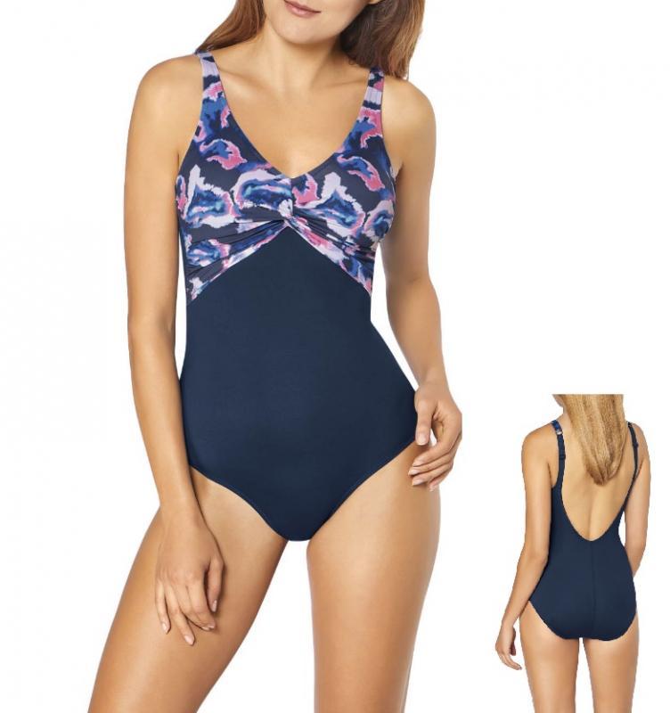 Costum de baie intreg, cupe fara armatura din burete usor pentru a asigura sustinere cat mai buna. In spate croiala este decoltata pana mai jos de linia sutienului. Bretelele sunt reglabile, materialul are proprietatea de uscare rapida.