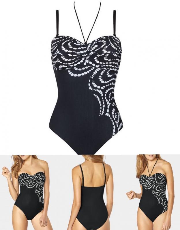 Costum de baie intreg, bretele detasabile, cupa fara armtura, din burete subtire, material cu proprietatea de uscare rapida. Bretelele sunt reglabile iar decolteul de la spate este la nivelul liniei sutienului. Un costum de baie extrem de feminin si elegant.